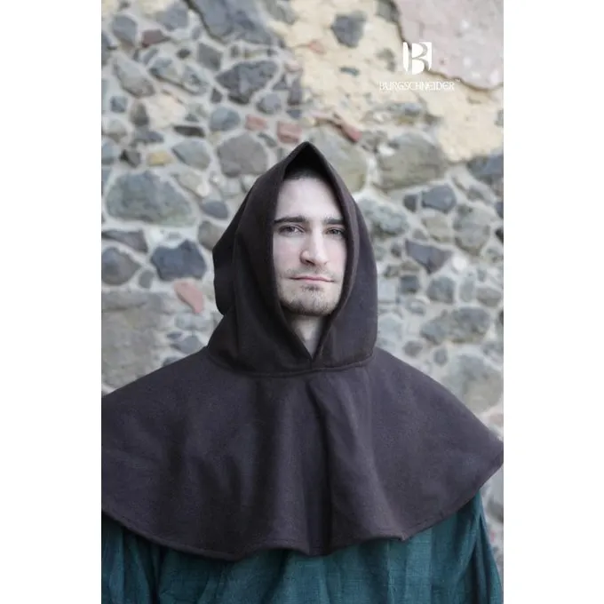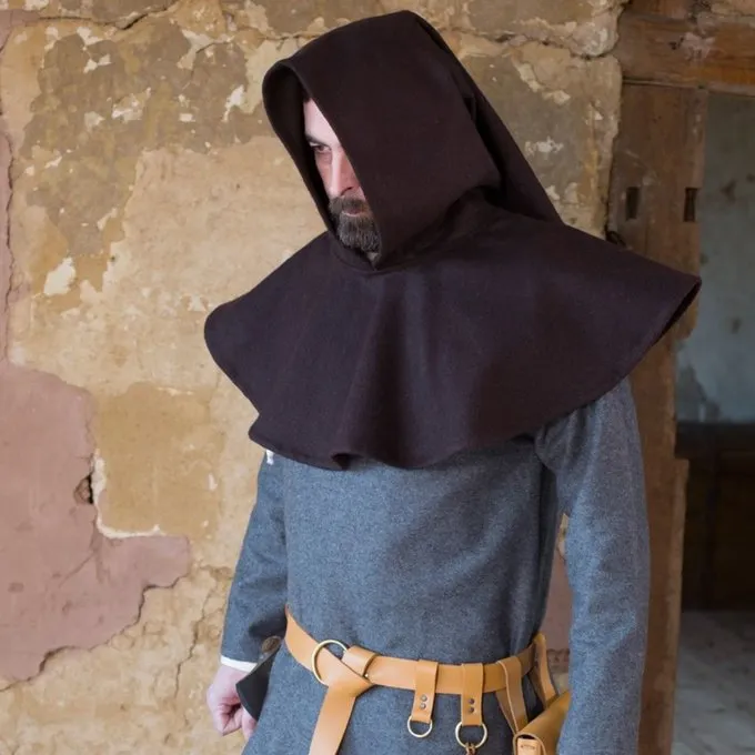 This chaperon is made after several 14th and 15th century manuscripts, pen drawings and sculptures. Chaperons like this were worn all over feudal Europe. They protect the head, neck and shoulders from the rain and cold. Chaperons were worn by people from all classes in society and both sexes.
