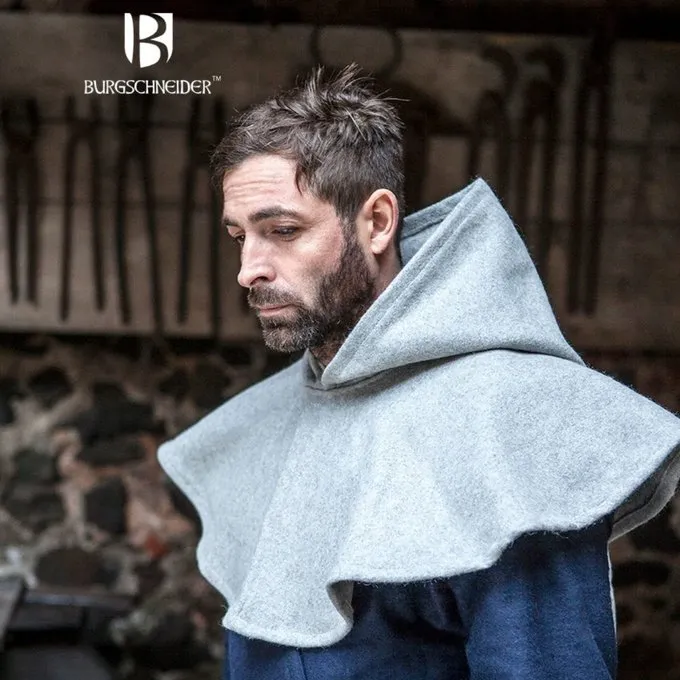This chaperon is made after several 14th and 15th century manuscripts, pen drawings and sculptures. Chaperons like this were worn all over feudal Europe. They protect the head, neck and shoulders from the rain and cold. Chaperons were worn by people from all classes in society and both sexes.