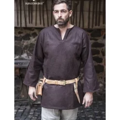 In some eras, the length of the tunic designated the social status of the wearer. In Ancient Rome, the tunic was worn airy and simple with a basic design. The Vikings and Germanic people wore their tunic less airy, with an undertunic, long sleeves, trousers and leg wrappings against the cold.