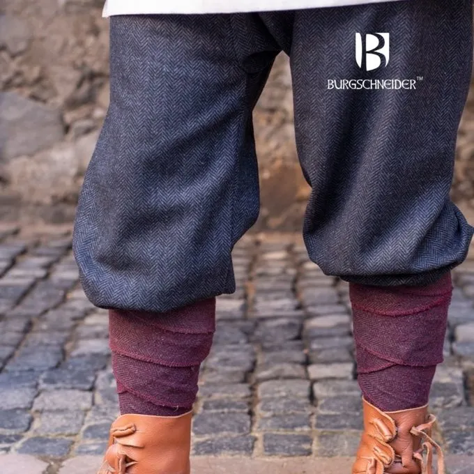 The herringbone pattern is a historical weaving method that was used alll over early medieval Europe and still occurs today. Archaeological finds show that Vikings wore fabrics using this weaving method. Textile fragments with a herringbone motif have been excavated, for example, in the historical Viking towns of Hedeby, Birka, Jorvik (Coppergate and Lloyds Bank) and in London. The herringbone design gives these pants a very historically correct look and is an asset to Viking re-enactors.