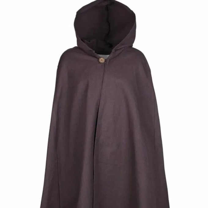 Cloaks like this were worn during the Middle Ages and the Renaissance. Originals can be seen in illuminated manuscripts and on stained glass windows. The cloak is made of cotton and suitable for spring, summer and early autumn. The cloak has a large hood and you can fasten it with a wooden button. With colder weather you can wear a chaperon for extra heat. The cloak can be worn by both men and women. It is the perfect complement to medieval LARP, Cosplay and re-enactment costumes.