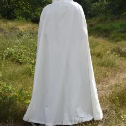 Cloaks like this were worn during the Middle Ages and the Renaissance. Originals can be seen in illuminated manuscripts and on stained glass windows. The cloak is made of cotton and suitable for spring, summer and early autumn. The cloak has a large hood and you can fasten it with a wooden button. With colder weather you can wear a chaperon for extra heat. The cloak can be worn by both men and women. It is the perfect complement to medieval LARP, Cosplay and re-enactment costumes.