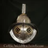 Product details: Length (front to back): 22.5 cm / Width (ear to ear): 17 cm / Max. head circumference: 60 cm / Material: brass / Thickness: 1.3 mm / Inlay: leather / Weight: 1.65 kg / Based on a historical original: yes /