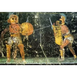Protection like this was worn by the Murmillo gladiators. This leg protection is made after several 1st to 4th century images. Leg protetion like this was made of paddded material or leather.