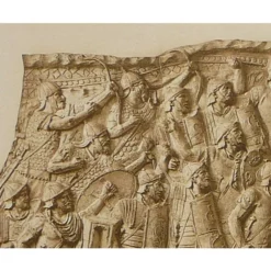 Most of the Roman archers were recruited in the eastern, oriental regions. Therefore many tombs and inscriptions show them wearing helmets with eastern influences, like this helmet, which is very similar to the Slavic helmet type. This helmet is made of steel with brass decoration and also brass cheek protection and neck protection. Because the coin-shaped plates overlap each other and are sewn on suede leather, this offers extra protection.