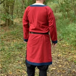 This tunic is based on early medieval images in illuminated manuscripts from the eighth and ninth centuries, such as the Stuttgart Psalterium. Particularly suitable for re-enacting and LARPing of the Great Migration, Merovingians and Franks. Manuscripts show that tunics from this period had contrasting colors and colored strips of fabric as decoration. This tunic is a reconstruction of this style.