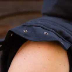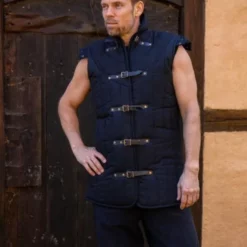 This gambeson protects the torso and hips. The gambeson is sleeveless and therefore nice and cool during hot days. You can wear it under a chain mail, under armor or as a separate piece of clothing or jacket. The gambeson consists of layers of cotton canvas with polyester padding, sewn in vertical lines in the European medieval style. The gambeson has a raised collar. You can wear it in combination with a padded collar and arming cap for optimal protection of the head and neck. This gambeson is also available in larger sizes.