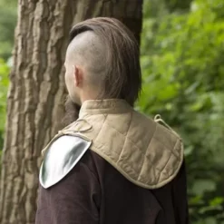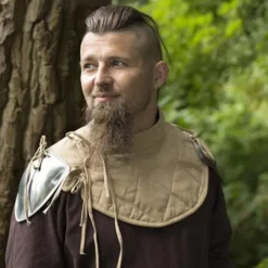 You can wear the gorget as extra protection with your gambeson or LARP armor. The set weighs less than a kilo so with the collar and pauldrons you are quick and agile. You can attach the pauldrons to the collar with laces, so the collar and pauldrons can also be used separately.