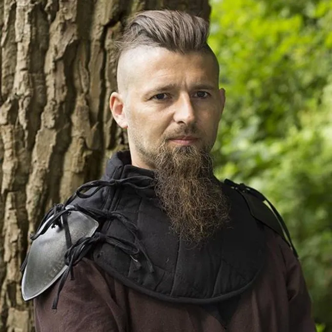 For excellent protection during LARP battles! This set consists of a cotton padded gorget with two pauldrons of 1 mm thick polished steel. Also suitable for re-enactment when you wear them as clothing accessories, but for re-enactment battles the steel is too thin.