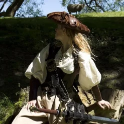 This tricorn is suitable for re-enactment and LARP of pirates, the American Civil War and Napoleontic. It is made of high quality strong durable leather and has a beautiful border decorated with leather lacing.