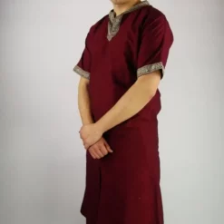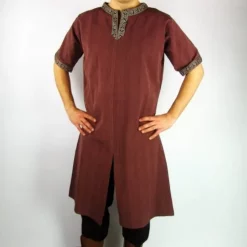 This tunic is made of cotton. It is available in the sizes S up to XXL in the colours black, green, blue, red, cream, light brown or dark brown. Please see the drop down menus above.