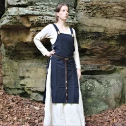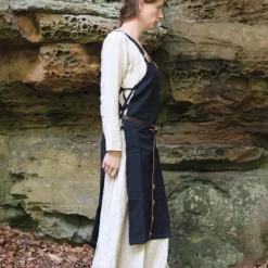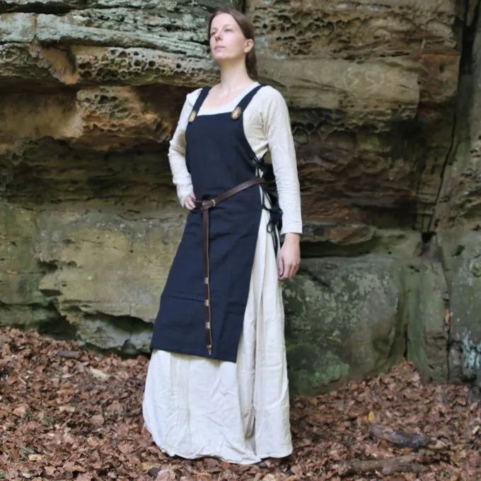 This overgarment is made of cotton and is inspired by the Scandinavian hangeroc. On both sides are cords for an optimal fit.