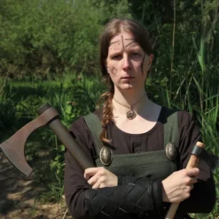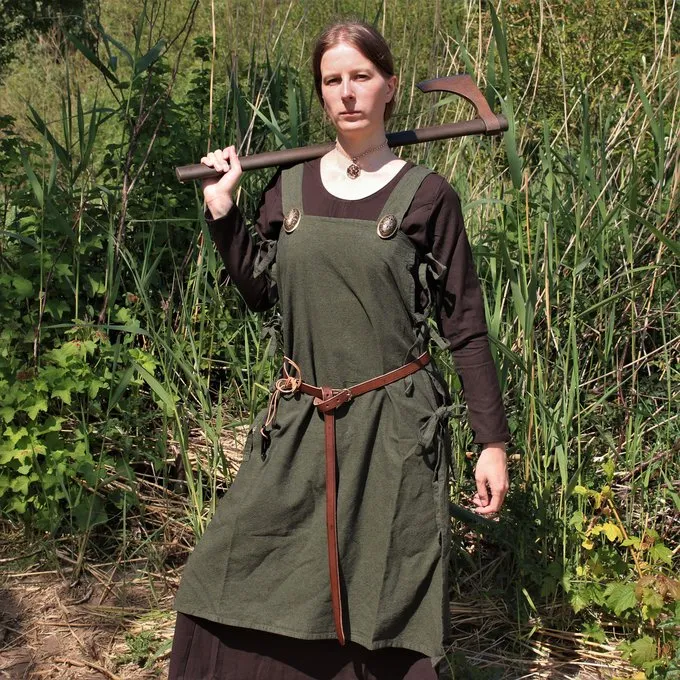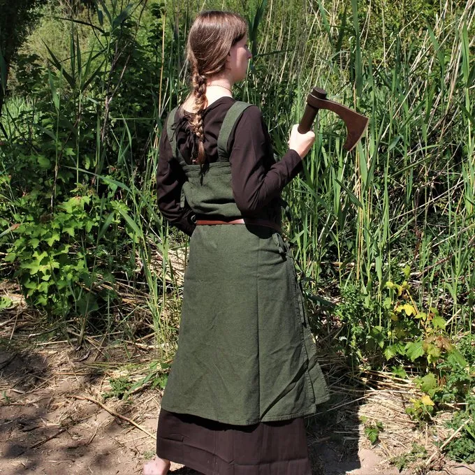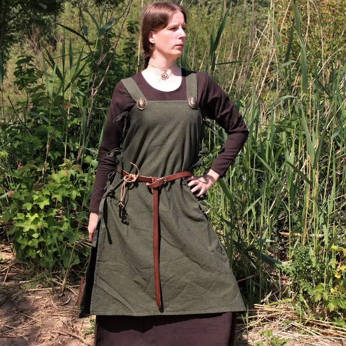 This overgarment is made of cotton and is inspired by the Scandinavian hangeroc. On both sides are cords for an optimal fit.