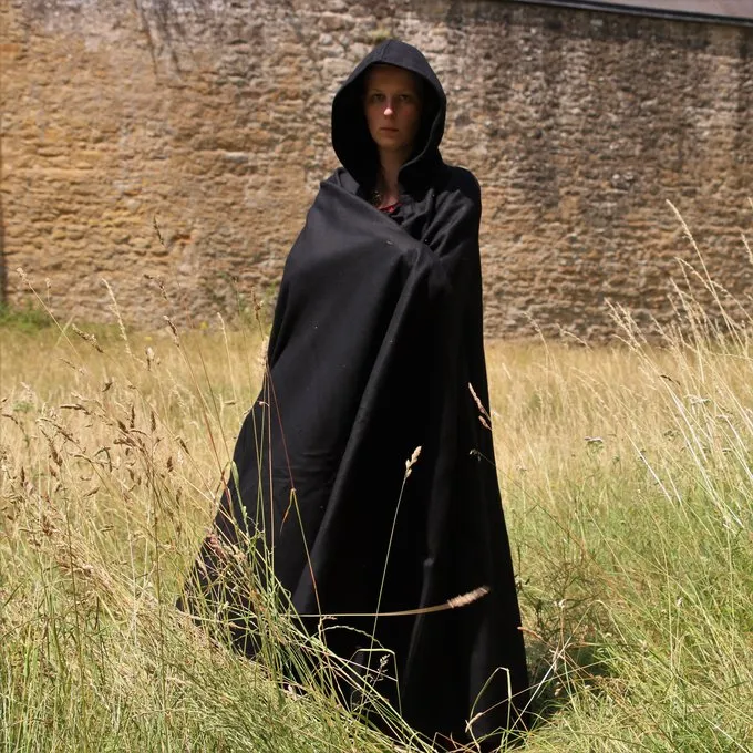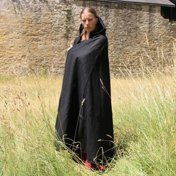This medieval cloak has an extra large hood to provide more protection against rain and cold. Cloaks like this were historically even used for sleeping. This cloak is suitable for re-enacting several periods. This cloak provides protection against rain, wind and sun. Perfect for summer and winter encampments.