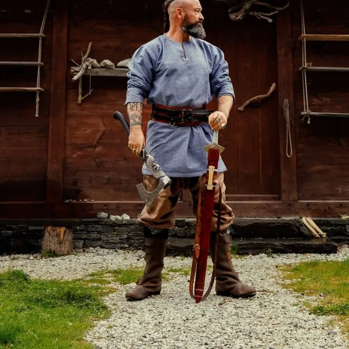 This Viking tunic is based on fragments of historical originals. Tunics like this were worn all over the Viking World. This tunic is made of rough woven cotton, which gives it an extra historic look.