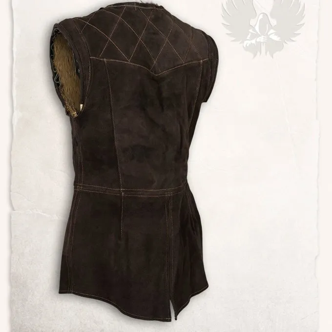 This beautiful brigandine is perfect for fantasy festivals, Cosplay, reenactment and LARP. These types of brigandines can be seen in medieval manuscripts. This unique brigandine is handmade from high quality natural materials. The outside is made of suede leather and the inside of soft nutria fur. This makes it warm for the winter. Ideal for noble characters or characters from cold regions like the Vikings. The fur comes from organic breeders in Germany and from hunting. No fur from factory farming has been used.