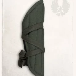 These gambeson bracers are made of rough woven canvas and have a polyester padding. The arm guards offer protection to the vulnerable forearms and can also be worn under steel bracers or other harness parts.