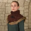 This beautiful gambeson collar is made of wool with a polyester padding. This gambeson collar is trimmed with artificial fur. It is ideal for portraying a noble or barbaric character and perfect for the winter months.