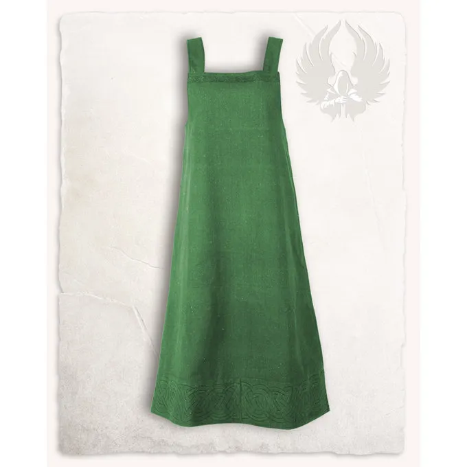 This hangeroc is suitable for Viking reenactment, LARP and Cosplay. The hangeroc reaches to the calves. And has an embroideredknot motif at both the bottom and the top. This hangeroc is a perfect accessory for Viking ladies’ costumes.
