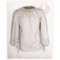 This shirt is suitable for Pirate style, cosplay and LARP. The shirt is made of linen so it is extra authentic. It has a v-neck that can be tightened with strings. The sleeves of the shirt are wide, but can be tied with the strings, creating puffed sleeves. The shirt is light and can be worn under a coat.