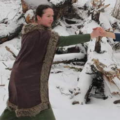 A wonderful cloak for Cosplay, LARP, reenactment and Viking and medieval costumes. The coat is two-layered and has a faux fur trim that looks just like real fur. Please note: the cloak is delivered without fibula.