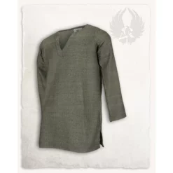 This tunic is suitable for Viking reenactment, LARP and Cosplay. The tunic is made of cotton and has a beautiful authentic herringbone pattern. The tunic has a cut-out v-neck that gives it an elegant look.