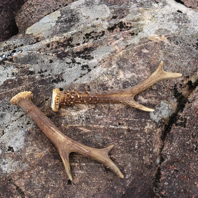 Every year a deer sheds its antlers.Then new antlers grow.Our antler sets are composed with antlers that have been found in nature.We work with someone who is licensed to collect these antlers.The antlers come from Germany.