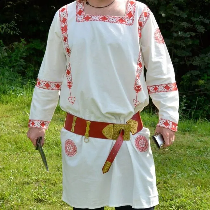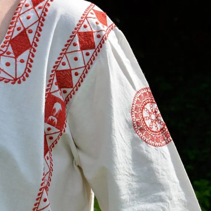 This tunica is made from cotton and embroidered with red orbicula and clavi. It is available in size S to XXL.