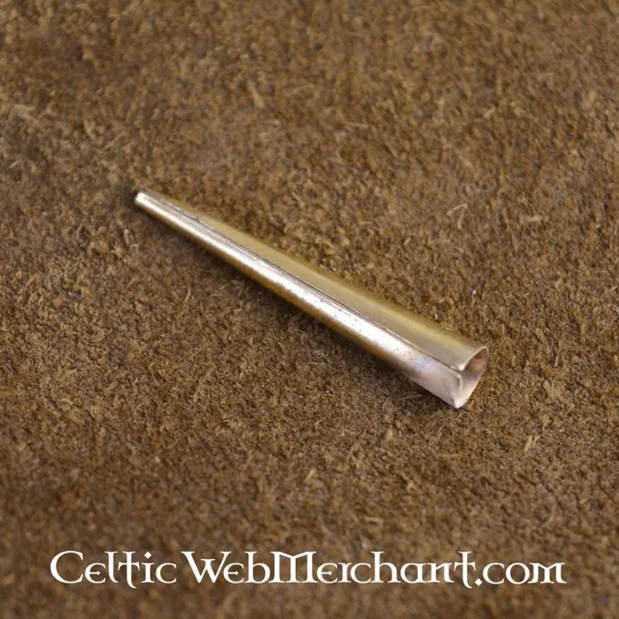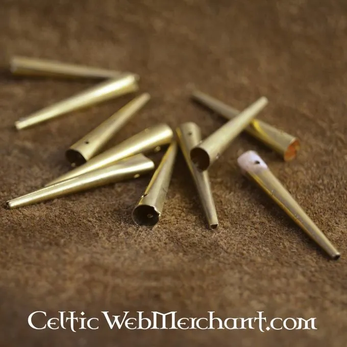 This lace end is based on an original from the 15th century. Similar lace ends were used all over Europe between the 13th and 16th century for braies and other pieces of clothing. These ends are made of brass, are 4 cm long and are delivered as a set of 10.